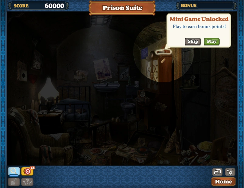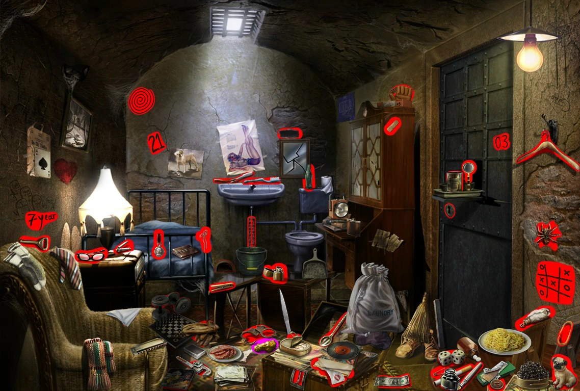 The Mini Game in the Prison Suite is a 'Find the Object' or 'rummage' type where it is required to rummage through belongings inside a cigar box to find a particular item(s) as prompted at the bottom of the game screen.